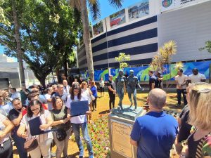 O prefeito Tite Campanella – PL, de São Caetano,entregou na manhã deste sábado (29), uma escultura em memória às jovens: Isabelli Helena de Lima Costa e Isabela Priel Régis, que perderam suas vidas após serem atropeladas em abril passado, em um dos cruzamentos da avenida Goiás, principal via da cidade, ação que marca também o lançamento de campanha de Segurança no Trânsito.
