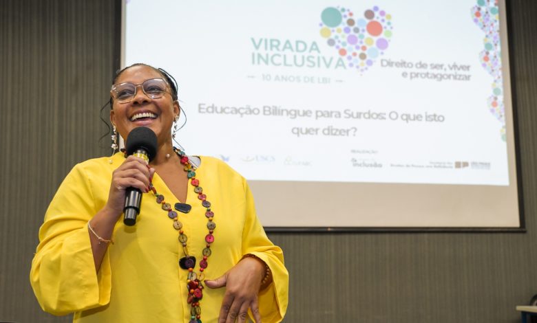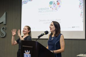 A Virada Inclusiva de São Caetano do Sul começou nesta segunda (1/12) com reflexões sobre o discurso e a prática da inclusão, abordando as transformações necessárias para a garantia de direitos das pessoas com deficiência. Esse foi o tema da palestra de abertura proferida pela professora Elizabete Cristina Costa Renders, da USCS (Universidade Municipal de São Caetano do Sul), que abordou a inclusão nos processos de ensino e aprendizagem. Na sequência, Cláudia Regina Vieira, professora da UFABC (Universidade Federal do ABC) discorreu sobre a política de educação bilíngue para surdos.