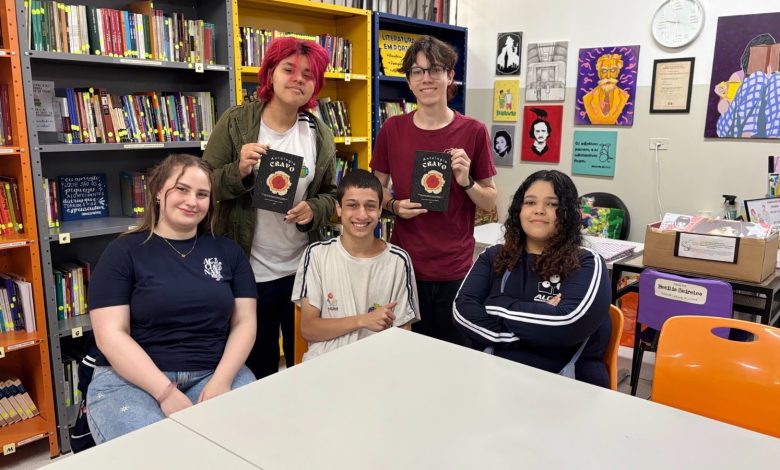 Dentro da sala Cecília Meirelles, onde acontece o Clube de Leitura, Alice Ribeiro Machado Vieira, Guilherme Luiz Holanda Pacheco, Helouise Martins Bernal, Henrique Tomaz Palivanas, Mariana Oliveira de Sousa contam como a leitura impactou na vida deles e como escrever ‘Cravo’ foi importante para o processo de construção de escritores.