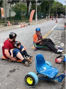 De manhã, a partir das 9h, já começa a brincadeira com os carrinhos de rolimã adaptados, que segue até às 16h, fazendo a alegria da criançada e matando a saudade dos adultos.