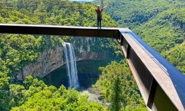 Anexo ao novo Mirante da Cascata do Caracol, inaugurado no último dia 27 de novembro, o Parque do Caracol, em Canela, volta a inovar e iniciou na quarta-feira (10), a pré-venda de sua próxima experiência de turismo de aventura contemplativa: o ‘Corajoso’. O atrativo explora a liberdade ao permitir que os visitantes contemplem a Cascata do Caracol enquanto caminham por uma viga metálica de um pouco menos de 1 metro de largura, presos somente pela estrutura superior, sem apoio nas laterais.