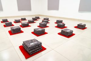 A exposição é completada com três instalações: ‘Conversatório’, composta por tambores de metal, câmeras e monitores; ‘Se 8 bilhões pudessem beber esse mar’, composta por 200 copos azuis; e ‘O frio do Norte é mais frio do que o frio do Sul’, com 18 cobertores dobrados, cada um com uma etiqueta com o nome de um museu e uma cidade da Europa.
