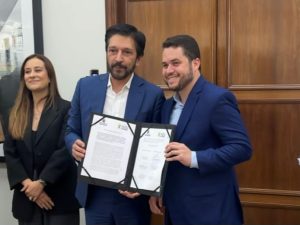 A Prefeitura de Santo André assinou nesta terça-feira (16) um termo de cooperação com a Prefeitura de São Paulo para utilização do Sistema de Monitoramento e Acompanhamento Estratégico (SMAE). O evento contou com as presenças dos prefeitos Gilvan Ferreira e Ricardo Nunes e ocorreu no Edifício Matarazzo, sede da administração paulistana. Também estiveram presentes o secretário de Inovação e Tecnologia de Santo André, Diego Cabral, e a diretora da Defesa Civil, Priscila Oliveira.