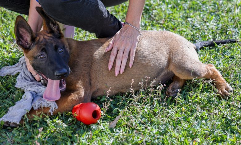 Filhotes de três meses, os dois estão em fase de socialização e início de testes de adaptação do serviço. Passadas essas etapas, iniciam o treinamento efetivo de faro, patrulhamento e proteção para, definitivamente, compor a equipe do Canil.