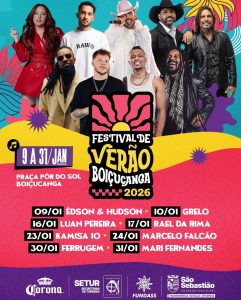 Já Boiçucanga, na Costa Sul da cidade, por sua vez, receberá nomes como Édson & Hudson, Grelo, Luan Pereira, Rael da Rima, Kamisa 10, Marcelo Falcão, Ferrugem e Mari Fernandes. A abertura de todos os shows, durante os dois eventos, será realizada por artistas locais, iniciativa que promete promover a cultura local e gerar oportunidades.
