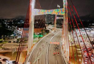 Show de drones, corrida de 5k e presença do governador Tarcísio de Freitas – Republicanos. Com esse enredo, o prefeito de São Bernardo, Marcelo Lima – Podemos, inaugurou neste sábado (20) a 1ª Ponte Estaiada do município e do ABC nestes moldes, que irá transformar a mobilidade urbana do eixo de ligação entre as Avenidas Piraporinha e Robert Kennedy. Com avanço de 70% das obras físicas em 2025, a entrega do complexo, símbolo de progresso, irá desafogar fluxo de veículos, principalmente das regiões do Planalto, Jordanópolis, Paulicéia e Taboão.
