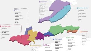 Embora haja diferença entre a capacidade de armazenamento de água dos reservatórios, todos apresentam variação diária do volume operacional negativa, que varia de 0,1 a 0,5%.