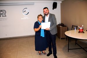 A presidente do Rotary Club de São Caetano do Sul, Sandra Caldeira, agradeceu e homenageou o palestrante Luciano Saboia com um Certificado de Agrdecimento.